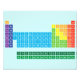 Impressão de fotografia com mesa periódica dos elementos, com cada grupo de elementos marcado em cores arco-íris.