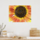 Esta bela impressão apresenta uma fotografia detalhada e detalhada de um girassol laranja bonito. A fotografia foi tirada por meio de macrofotografia e mostra um lindo girassol com uma mistura bonito de pétalas cor de laranja e amarelo.