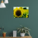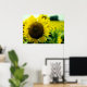 Ilumine qualquer quarto com esta impressão de fotografia de um girassol num campo amarelo e verde.