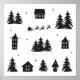 Wall Art. Winter Village. Papai Noel. Casa Silhouettes. Casas de Natal e Árvores. Feriados de inverno Preto & Branco