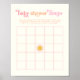 Elevem suas festividades de chá de fraldas com nosso Bingo Chá de fraldas Sunshine! Este jogo apresenta um design boho adornado com uma aquarela solar, tipografia retrô e sotaques de estrelas contra um fundo branco macio. Com seu esquema brilhante e feminino de cor rosa, pêssego e amarelo, ele define o tom perfeito para celebrar seu pequeno raio de sol no caminho. Envolva seus hóspedes em um jogo de bingo cheio de diversão, adicionando uma camada extra de entusiasmo ao seu evento.