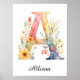 Impressão de Letra Inicial Floral de Flor Silvestre A Arte de Parede de Nome de Berçário de Flor Silvestre, Letra Floral Personalizada Colorida A, Quarto de Menina com Monograma Personalizado
