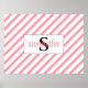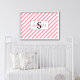 Este adorável monograma com uma inicial em letra cursiva e primeiro nome é um complemento maravilhoso para o berçário de uma menina. Com listras diagonais rosa e branco, ela certamente vai adorar! Adicione uma moldura e estará pronto para pendurar. Peça o seu hoje.