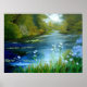 Os papagaios azuis bordam o rio Mattawamkeag no Norte Maine Woods. Rico em cor, detalhes e textura. Originalmente uma pintura a óleo.