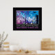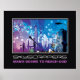 Impressão de poster motivacional urbano de edifícios da cidade com estrada fechada, apresentando edifícios da cidade e arranha-céus atrás de uma cerca e uma estrada fechada com algumas barreiras. Atrás deles, o céu é de tons azuis e roxos com raios. Há a frase/citação “Arranha-céus, desejo do homem de alcançar Deus” abaixo da imagem. Você pode alterar o texto e adicionar sua citação ou um poema. Você também pode torná-lo desmotivacional.