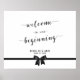 Impressão de placa de recepção de casamento preto e branco com arco preto e texto personalizável - você pode adicionar o nome da noiva e do noivo e a data do casamento. As dimensões do impressão de sinal (poster) são de 20 por 16 polegadas.