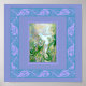 Delicada aquarela de uma bela sereia brincando com vários peixes, com uma borda de design de peixe Celta.