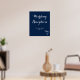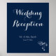 Impressão de sinal de recepção de casamento azul de marinho personalizado com texto personalizável - você pode adicionar o nome da noiva e do noivo e a data do casamento. As dimensões do impressão de sinal (poster) são de 20 por 24 polegadas.