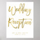 impressão de sinal de recepção de casamento branco e Dourado com efeito de folha de ouro (faux, impresso como uma imagem) e texto personalizável - você pode adicionar o nome da noiva e do noivo e a data do casamento. As dimensões do impressão de sinal (poster) são de 18 por 24 polegadas.