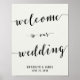 Impressão de recepção de casamento de placa de de caligrafia branca e preta com texto personalizável - você pode adicionar o nome da noiva e do noivo e a data do casamento. As dimensões do impressão de sinal (poster) são de 11 por 14 polegadas.