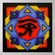 Esta é uma pintura de uma mandala com o Olho de Horus no centro. O Olho de Hóus é um antigo símbolo egípcio de proteção, poder real e boa saúde.