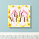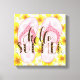 Flores tropicais amarelas, chinelos cor-de-rosa e uma camada de texto divertida dão a vocês todos os elementos da arte perfeita na parede do verão.