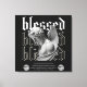 Esta impressão de arte evocativa combina uma escultura de anjo clássica com a tipografia gótica contemporânea. A palavra "abençoado" aparece de forma proeminente, convidando a contemplação e a reflexão sobre a fé e a espiritualidade.