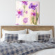 Arte de abstrato, flores roxas e vasos limpos adicionarão sotaque e ritmo ao seu decor de quarto.