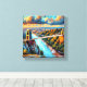 Este trabalho de arte espetacular mostra a icônica ponte de suspensão Clifton, em pé majesticamente sobre o Avon Gorge em Bristol, Inglaterra. A peça captura uma visão de tirar o fôlego durante o que parece ser um pôr do sol dramático, com tons ricos e vibrantes de laranja, amarelo, azul e lacre girando pelo céu. As nuvens dinâmicas acima complementam a beleza cênica da paisagem abaixo, destacando o estilo impressionista dá vida à cena, criando uma atmosfera enérgica e expressiva. A própria ponte, iluminada pela luz do ouro, forma o ponto focal dessa impressão dinâmica e deslumbrante.