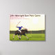 Um jogador de polo andando de alce, balé levantado para greve. O sol pendura sobre a floresta de coníferas circundante. A leitura de texto, "25 Midnight Sun Polo Game", "Patrocinado pelo North Star Polo Club", "Domingo no Polo de Fairbanks" e "Começa prontamente à meia-noite Mosquitos e tipos com menos de oito anos são gratuitos" também aparecem. Todos os anos a equipe de beisebol Goldpanners de Fairbanks, Alaska joga no Jogo Sun Baseball da Meia-Noite. O jogo começa à meia-noite no solstício de verão, iluminado apenas pelo sol. Fairbanks fica apenas a 160 milhas ao sul do Círculo Ártico, o sol está começando a se pôr no norte à medida que o jogo começa e, na sua conclusão, cerca de três horas depois, o sol começa a se erguer novamente - também no norte. O beisebol não é o único esporte que poderia ser jogado no solstício. E a ideia de andar de alce não é nova. Na Europa norte e na Ásia, a alce foi usada para carregares e cargas em terrenos inóspitos. Como montagem, a alce não tem igual em cruzar turfeiras e quedas, escorregando por matas, subindo sobre rochas, e nadando rapidamente através de rios largos e perigosos. Nas densas florestas e turfeiras de coníferas que cobrir grande parte da Europa norte e da Ásia, um cavaleiro a cavalo não pode ultrapassar um cavaleiro em alce - como o general russo Yermak Timofeyich descobriu quando começou a conquista da Sibéria em nome de Czar Ivan, o Terrível no século XVI. Para ganhar a vantagem sobre os motociclistas siberianos, o general Timofeitsch proibiu a criação de alces, matou a alce domesticada, e sistematicamente caçou motociclistas para derrubá-los, empalá-los ou mutilá-los publicamente como exemplos para outros. É provável que a criação de alces nas florestas nortes tenha sido frequente o suficiente para causar incômodos, já que, como sabemos agora, muitas das suas vantagens como animais de fardo são difíceis de manter em cativeiro. Se o alce treinado tivesse sido comum e fácil, os cossacos robustos e aventureiros certamente teriam mudado montagens e perseguido os alçapões em igualdade de condições. Na Europa, também se utilizaram alças para puxar distâncias de excelente entre resíduos congelados. Um inconveniente em usar a alça dessa forma é que cavalos desconhecidos com alce almiscarado e incontroláveis quando confrontados com essas criaturas estranhas. No século XVII, a Câmara Municipal da cidade estônia de Dorpat (Tartu) proibiu a maruca domesticada nas suas ruas. Só se pode imaginar o que os cavalos de destruição fora de controle, amarrados a um treinador ou vagão, poderiam se espalhar pelas ruas estreitas da cidade depois de subitamente se depararem com um alce que puxava inocentemente um trenó para a cidade. O rei Carlos XI da Suecia considerou montar um regimento de cavalaria em alce, provavelmente para tirar proveito do terror que eles atacariam no coração de cavalos inimigos. Sem o cânone e o mosquete, não seriam necessárias lanças e sabres para dispersar a carga de cavalaria do inimigo. O simples aparecimento de alce no campo de batalha colocaria a cavalaria do inimigo em voo sem cabeça. Infelizmente, o grande plano do rei ficou nu, e experimentos em domesticação de alce neste século tornam evidente o porquê. O alce nunca poderia prosperar como a cavalaria cresce devido à sua susceptibilidade catastrófica às doenças animais, e devido às dificuldades excelentes em alimentar a alce adequadamente. Já em 1869, o zoólogo e explorador russo Alexander von Middendorff escreveu para o Governo do czar: "Até a Europa civilizada hoje falhou em domesticar o alce, o animal que indubitavelmente pode ser de utilidade excelente. O nosso governo deveria aplicar todos os esforços possíveis para a domesticação deste animal. Isso é possível. A recompensa seria excelente, e assim seria a glória." Após o século XVII, a criação de alces tornou-se uma arte esquecida durante quase quatrocentos anos. Na Suecia houve um debate no final do século 18 sobre o valor nacional de usar a alça como animal doméstico. Entre outras coisas, a alça foi proposta para ser usada na distribuição postal, e houve uma sugestão para desenvolver uma cavalaria montada em alce. Tais propostas não foram implementadas, principalmente porque a caça extensiva à alce quase a levou à extinção e por causa da agressividade durante o período de rutagem. A ideia da domesticação dos alces não ganhou muita força na Rússia czarista. No entanto, reapareceu na União Soviética dos anos 30; na altura, foi sugerido que a cavalaria alce podia ser utilizada de forma eficiente, mesmo na neve profunda. Em 1934, o Comitê de Reserva Natural do Governo soviético ordenou a criação de reservas de alce (zapovedniks) e de centros de reprodução de alce. O trabalho experimental, iniciado por Petr Alexandrovich Manteufel, teve lugar em vários locais: em Yakutia, na Fazenda de Jogo Experimental de Serpukhov, e na Reserva Natural de Bor Buzuluque, na região de Orenburg. Os cientistas russos abordaram sistematicamente a questão da criação de alces - e foram bem sucedidos. Descobriram que a alce poderia ser treinada para dar leite, cargas de carregar ou cavaleiros, puxar trenós e troncos, ir para o pasto e voltar voluntariamente aos estábulos. No entanto, o trabalho não foi terminado a tempo da Segunda Guerra Mundial, e quando a guerra chegou, toda a ideia de cavalaria como força de combate foi varrida. Depois da guerra, a ideia de domesticar a alça foi rebuscada, com foco no uso agrícola. Pensava-se que o alce, cujo próprio nome significa picar comido em língua algonquina, poderia ser uma forma ideal de melhorar a utilização do potencial de produção de biomassa da taiga da Rússia norte e oriental, que não são particularmente adequadas nem para o plantio de comidas nem para a pecuária convencional. Se o alce pudesse ser cultivado, poderiam receber alimentos praticame
