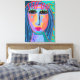 O meu retrato abstrato digital colorido de uma mulher com cabelo azul impresso na canvas