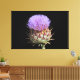 Uma fotografia de um palito roxo em flor em fundo preto.