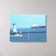 Los Angeles Harbor Light, também conhecida como Angels Gate Light, San Pedro Breakwater no Los Angeles Harbor, Califórnia. Construído em 1913. Grande navio preto e vermelho no fundo, pequeno navio de cruzeiro portuário no primeiro plano.