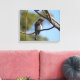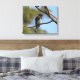A Phoebe Negra, Sayornis nigricanos, "flycatcher". Pássaro preto com barriga branca está sentado no galho da árvore nua. Céu azul claro e árvores difusas em fundo.
