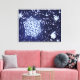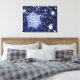 Um close 3D de um floco de neve contra um fundo de quedas de flocos em um céu escuro de inverno.