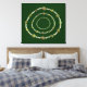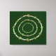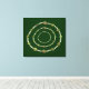 Círculo de pedras em tamanhos variados e tons de verde, com três pérolas separando as pedras, repete-se em três círculos consecutivos menores. Mudar a cor de fundo dá uma aparência diferente à design - o fundo atual é verde escuro.