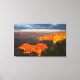 O pôr do sol Grand Canyon com nuvens de cinza e a luz do sol vermelha iluminando as penhascas e rochas do cânion.