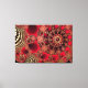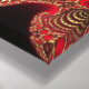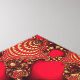 Um desenho fratural brilhante com espirais ornamentados de vermelho escuro e vívido, sobrepostas com filigrana de ouro como conchas metálicas e estudadas com rubis reluzentes.