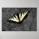 Foto de uma borboleta de Swallowtail de Tigre Oriental em repouso numa praia de areia úmida.