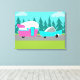 Esta tela Retro Camper / Trailer and Car Stretered Canvas Print apresenta um desenho de desenho moderno e minimalista de meio século que o deixará pronto para levar para a estrada aberta. Uma homenagem aos anos 50, este design apresenta um carro de turquesa vintage com o topo branco, puxando um trailer de viagem kitschy para seu destino final. O RV retrô perfeitamente restaurado tem uma metade rosa-quente inferior, metade superior branca, e um raio turquesa que separa os dois. A porta do lado da campista também é turquesa. O sotaque final é a asa rosa quente que se projeta a partir do fundo desta casa sobre rodas. Os campistas felizes estão dirigindo por uma estrada de cinza. A estrada está rodeada de relva verde e exuberante. Ao fundo, podemos ver as teais silhuetas de uma verdadeira floresta de árvores de cedro, contra um céu aqua com nuvens azuis fofas e leves. Esta design é perfeita para todos os hippies reformados, hipsteres que fogem, ou qualquer um que queira reviver algumas memórias de infância excelente. A melhor parte é que ninguém está perguntando, "Nós já estamos lá?"