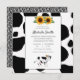 Quadrado de Impressão de Vaca Convites com padrão de vaca, uma vaca cortada e girassóis. Gráfico bonito de um vitelo vestindo um girassol no ouvido.