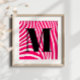 Adicione um monograma ousado e moderno para criar sua própria arte personalizada de parede. Bright rosa listras em branco. Impressão animal. Impressão tribal. Esconde-se zebra.