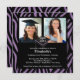 Comece seu evento com nosso convite para a graduação de fotos de impressão em zebra roxo e preto. Convite perfeito para a formatura de um segundo grau ou formandos. Basta preencher suas informações adicionar sua foto e você está pronto para ir. Visite nosso compro em www.celebrateitgraduations.com para uma grande variedade de convites para formatura!
