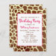 Um convite de aniversário à moda perfeito para o adulto ou a criança. Fundo do impressão do girafa das características do convite na parte dianteira e na parte traseira. Personalize o texto na parte dianteira com detalhes de sua ocasião.
