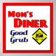 Mãe Diner boa cozinha retrógrada, dizendo em letras vermelhas achatadas com um hambúrguer gigante. Um tema publicitário de restaurantes para a mãe ou para o seu cozinheiro favorito.