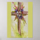 Pintura em aquarela representando uma cruz decorada para celebrar a Páscoa. Ele Ressuscitou. Cartão, cartão de Páscoa, marcadores de página e mais.