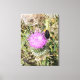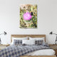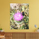 Uma abelha negra e amarela sobre uma flor de caroço roxa, com folhas e grama ao fundo. Foto original de agosto de 2019, Perranporth, Cornwall. Observe que você pode obter facilmente a mesma imagem em um tamanho que ajustado seu espaço suspenso e seu orçamento. Basta clicar no tamanho da canvas à direita da imagem para ver outras opções de dimensionamento e preço. 😃