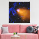 Essa imagem composta do aglomerado de galáxias Abell 3376 mostra dados de raios X do Observatório de Raio-X de Chandra e do telescópio ROSAT em ouro, uma imagem ótica da Pesquisa Digitalizada do Céu em vermelho, verde e azul, e uma imagem de rádio do VLA em azul. A aparência "bala" dos dados de raios X é causada por uma fusão, à medida que o material flui para o aglomerado de galáxias do lado direito. | Smithsonian e Smithsonian são marcas registradas detidas pela Smithsonian Institution.