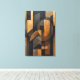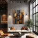 Arte abstrata geométrica em tons de dourado, bronze e preto com texturas metálicas. Formas circulares e retangulares criam uma composição dinâmica e elegante. Estilo Art Déco contemporâneo perfeito para decoração moderna, escritórios e espaços sofisticados. Sofisticação atemporal em cada detalhe geométrico.