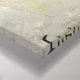 A vibrant cityscape is portrayed with bold, abstract strokes in red, blue, and yellow against a muted gray background. Two large, glowing moons add a surreal, otherworldly atmosphere to the scene.