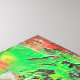 Rich reds dominate the surface, balanced by warm earth tones and flashes of green, creating depth and visual tension.