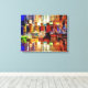 Arte para o seu bar ou toca, esta tela colorida de tela de abstrato, mostra linhas de garrafas de licor refletindo a luz na superfície do contador de bares.