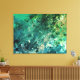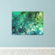 Uma composição dinâmica de abstrato apresenta uma matriz de formas e padrões giratórios em vários tons de verde, preto e azul