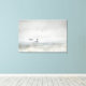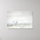 Um barco solitário flutua suavemente sobre a água suja, criando uma cena serena e tranquila. Um pássaro solitário voa no céu coberto, acrescentando uma sensação de solidão silenciosa.