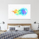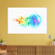 Água-viva grande, iridescente, desenhada artisticamente, brilhante, com longos tentáculos em branco, pintada sobre fundo de aquarela multicolorido. Água-viva arco-íris.