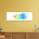 Água-viva grande, iridescente, desenhada artisticamente, brilhante, com longos tentáculos em branco, pintada sobre fundo de aquarela multicolorido. Água-viva arco-íris.