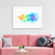 Água-viva grande, iridescente, desenhada artisticamente, brilhante, com longos tentáculos em branco, pintada sobre fundo de aquarela multicolorido. Água-viva arco-íris.