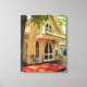 Sun domina uma cabana vitoriana de pão-de-gengibre em Oak Bluffs no Vineyard de Martha. A Associação de Campinas do Vineyard da Martha (MVCMA), uma atração popular na ilha, abriga centenas de casacos vitorianos de gengibre. Oak Bluffs já foi conhecido como Cottage City. O Vineyard de Martha está localizado em Massachusetts, perto de Cape Cod.