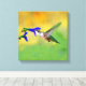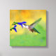 Esta maravilhosa impressão apresenta um delicado beija-flor se alimentando de uma flor azul brilhante. Os beija-flores são os únicos pássaros que podem voar para frente e para trás, além de pairar no ar, voar para os lados e até de cabeça para baixo.