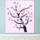 Alphabet ABC tree custom canvas, apresentando uma árvore com as letras alfabéticas nela em tons azulados roxos no fundo da rosa claro. Um excelente bonito e moderno para crianças, decoração de quarto.